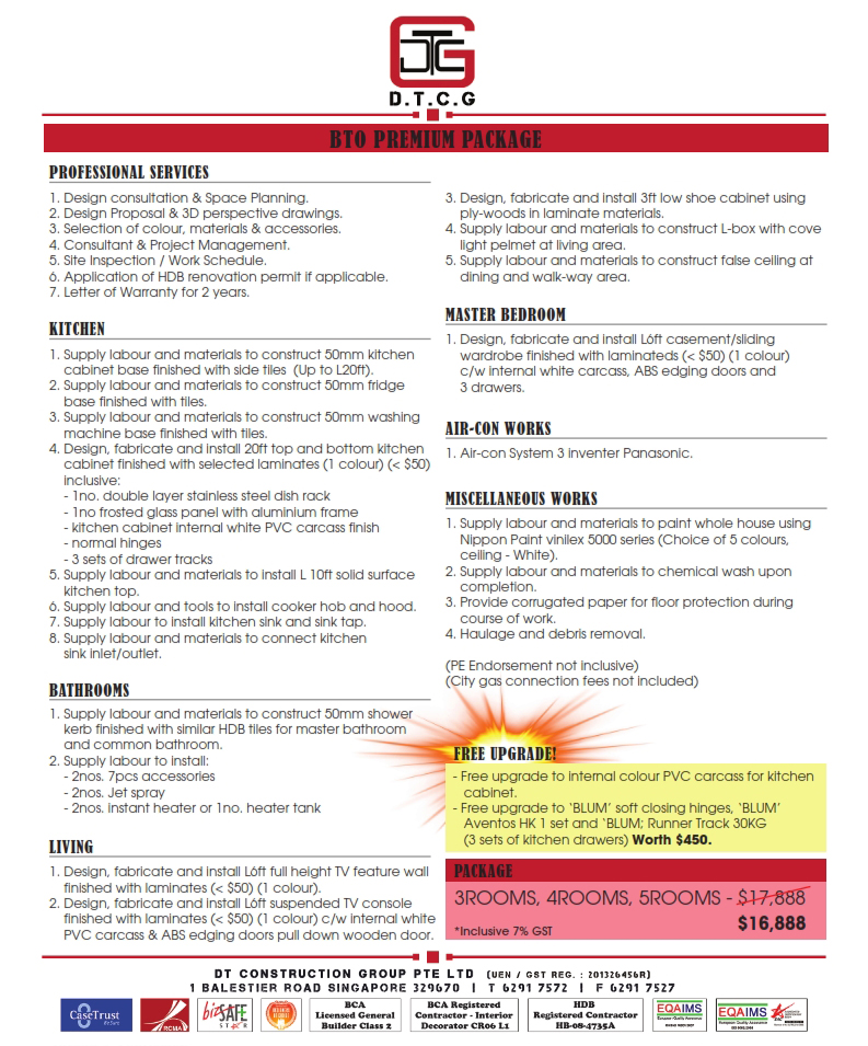 - Application of HDB renovation permit if applicable.